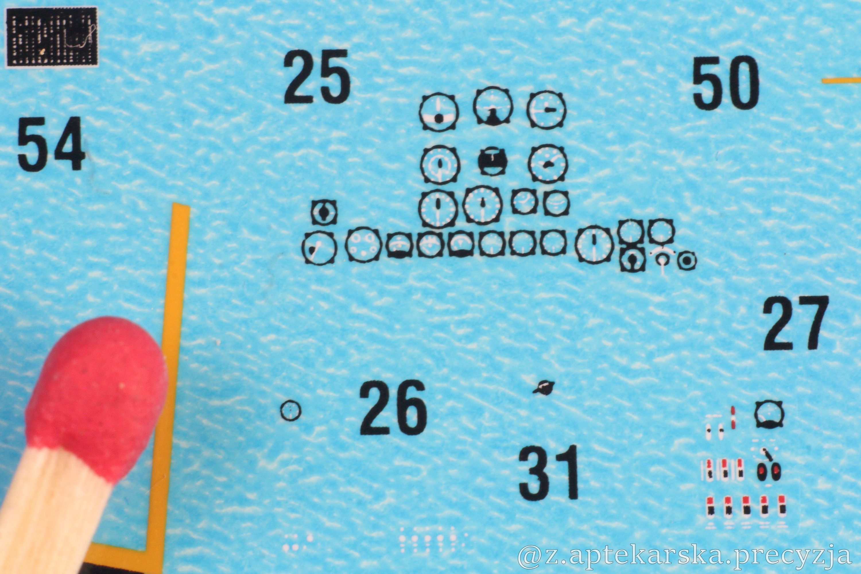 Jak się dowiedziałem ze strony producenta w ostatnim etapie przygotowania modelu do wydania pojawiły się informację o innym kolorze linii wyznaczających na płacie zbiorniki paliwa w niektórych maszynach. Stąd mały arkusik z erratą - szanuję za takie podejście.